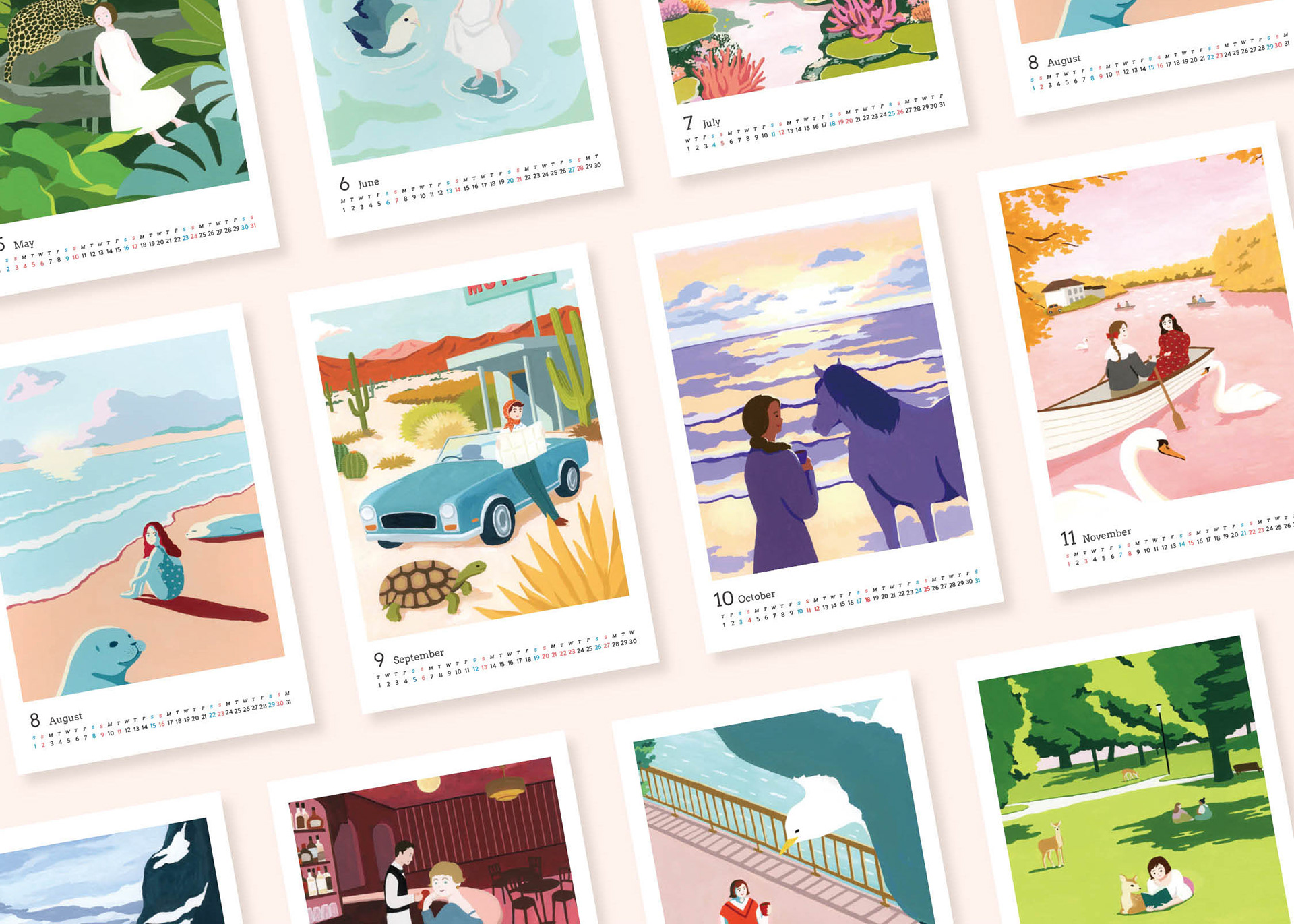 この半年間で描いたイラストをまとめました。カレンダー部分は小さいですが、お部屋に絵を飾るように楽しんでいただけると嬉しいです。(販売価格:¥2,000)